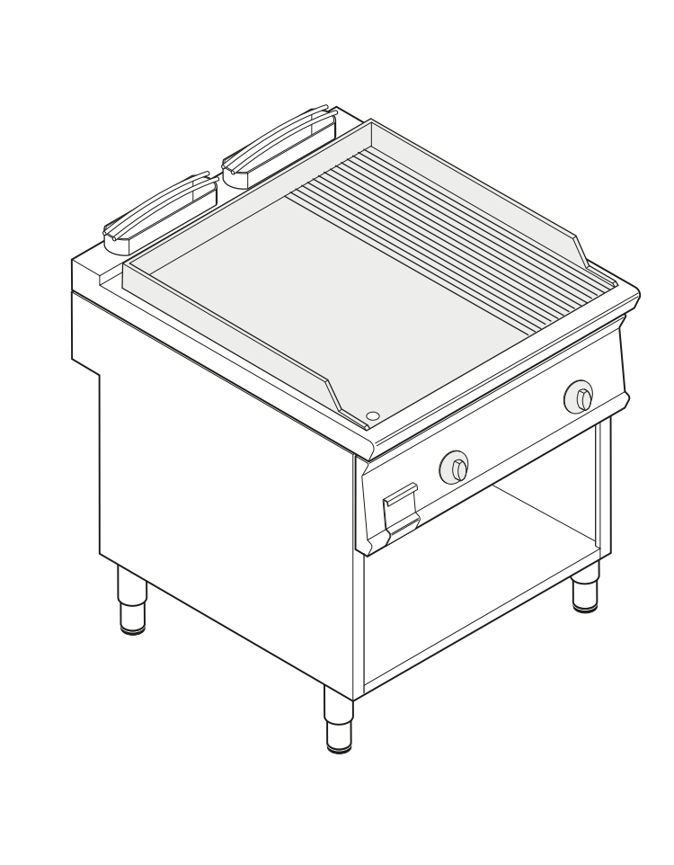 Fry-Top elettrico su vano aperto - piastra 1/3 rigata + 2/3 liscia, zona cottura cm 74,9x69,8 - trifase Kw 12 - cm 80x90x90h