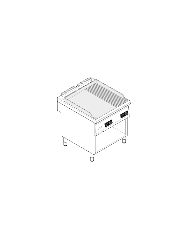Fry top elettrico su vano aperto, piastra 2/3 liscia + 1/3 rigata cromata spazzolata - con controllo elettronico - cm 80x90x90h