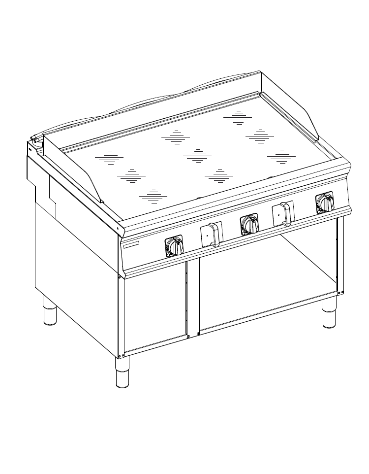 Fry-Top elettrico su vano aperto - piastra liscia cromata, zona cottura cm 113x69 - trifase Kw 18 - cm 120x90x90h