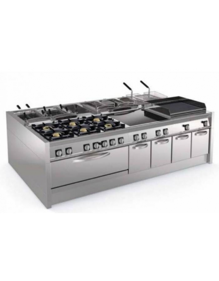 La piastra di cottura incassata e saldata ermeticamente al piano di lavoro permette di cucinare grandi quantità di cibi diversi.