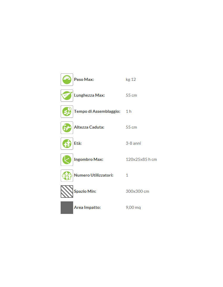 Certificato in conformità delle Norme Europee EN 1176 dall’Istituto Tedesco TÜV - SÜD.
