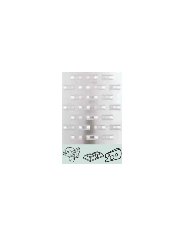 Una vasta gamma di grattugie per verdure, cipolla, aglio, formaggi teneri e stagionati, agrumi, frutta secca e peperoncino.