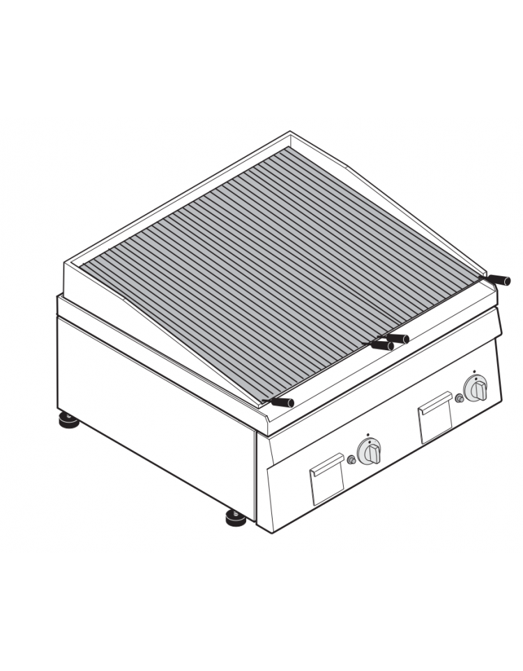 Griglia a gas a pietra lavica, versione top da 70 cm, con 2 zone indipendenti di cottura.