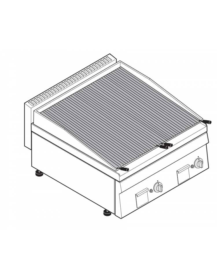 Griglia gas a pietra lavica, versione top da 70 cm con 2 zone indipendenti di cottura.