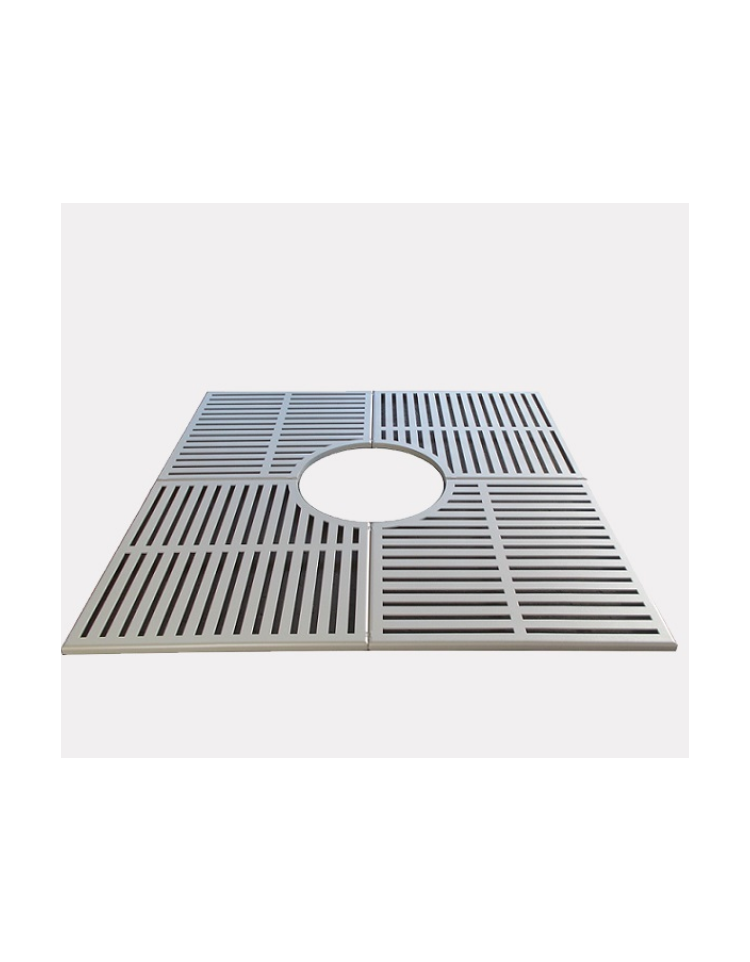 Griglia salvapiante con foro interno realizzata interamente in acciaio. La lamiera viene tagliata a laser e successivamente viene realizzato un bordo laterale. Vengono inoltre saldati dei rinforzi a sostegno. Struttura in acciaio zincato e verniciato a polveri.