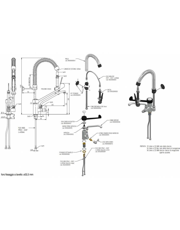 GRUPPO DOCCIA PRELAVAGGIO MONOFORO MISCELATORE CON CANNA GIREVOLE E LEVA CLINICA IN MATERIALE PLASTICO PA6, VERSIONE MINI