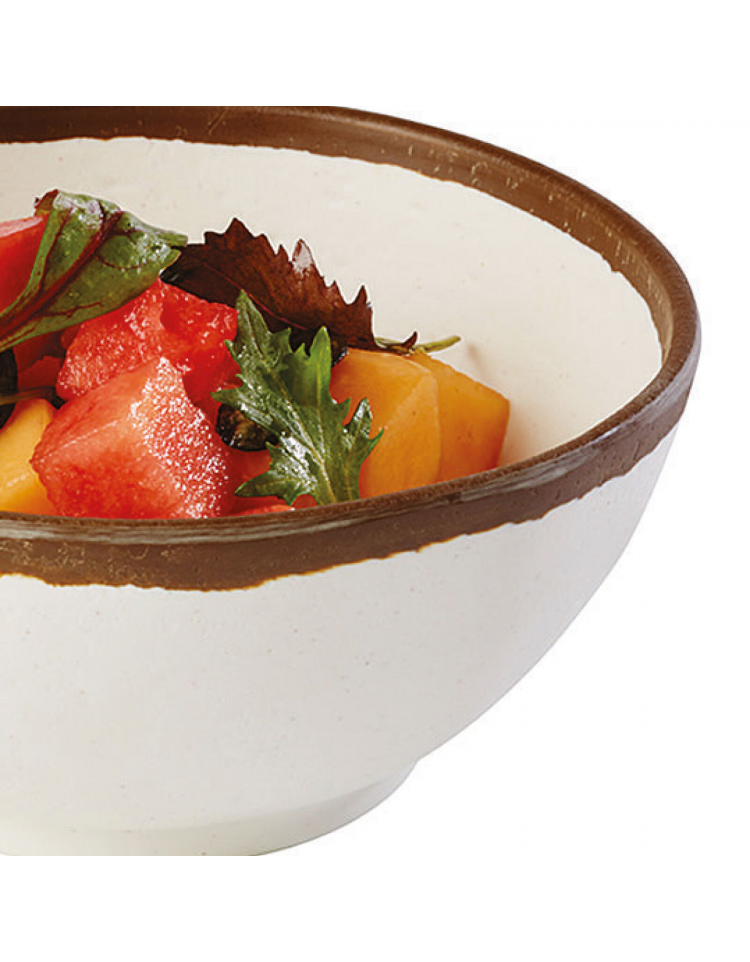 Insalatiera in melamina effetto argilla - colore bianco con bordo marrone - diametro cm 16 - altezza cm 7 - capacità lt. 0,70
