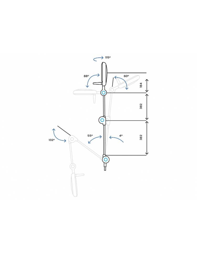 Sistema Ergo-Spring: il movimento del braccio tubolare articolato è servoassistito da una molla a torsione che assicura facilità di movimento e stabilità.