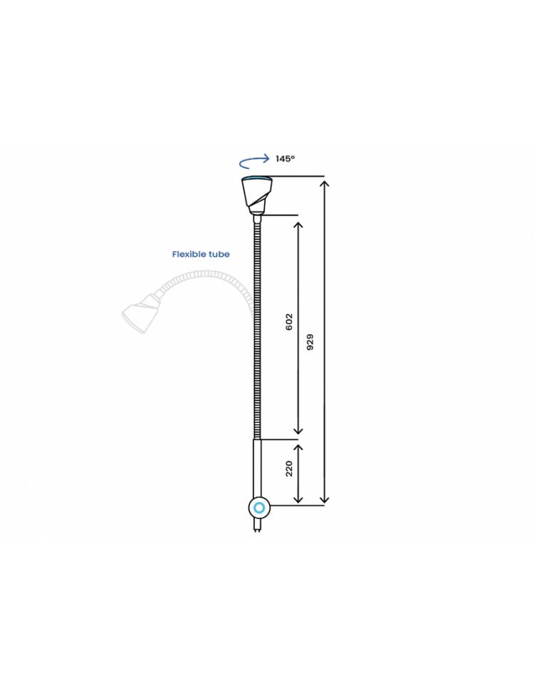 Il braccio flessibile facilita il posizionamento ed è rivestito da una guaina liscia bianca termoretraibile per migliore pulizia e disinfezione.