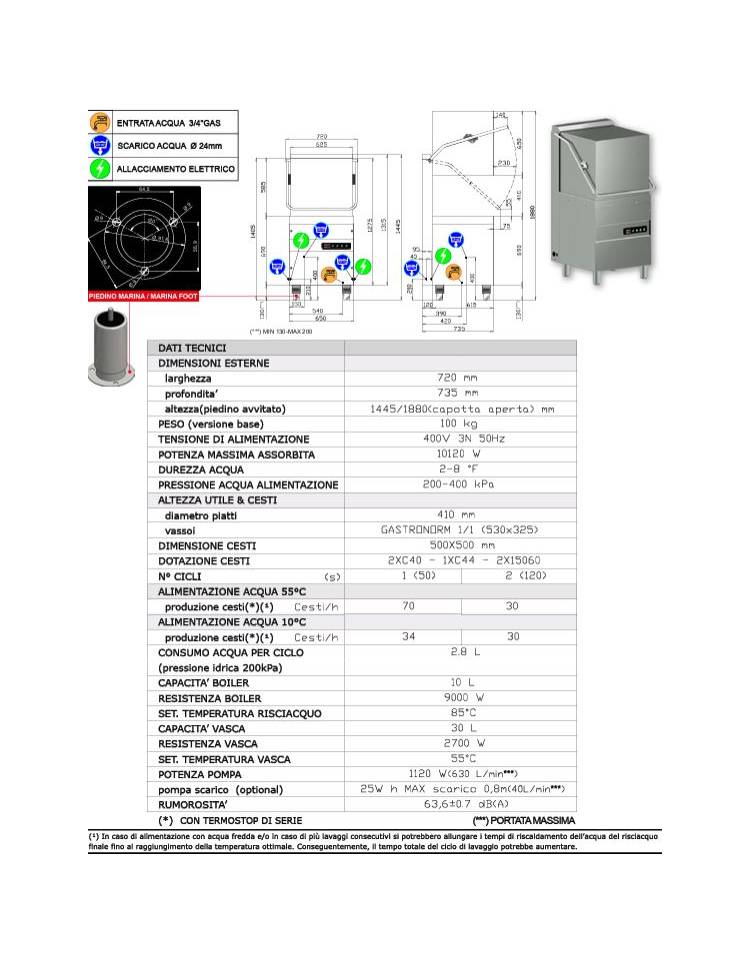 Lavastoviglie a capotta isolata con 2 cicli di lavaggio-Cesto cm 50x50-MONOFASE-Con vasca con fondo stampato autopulente