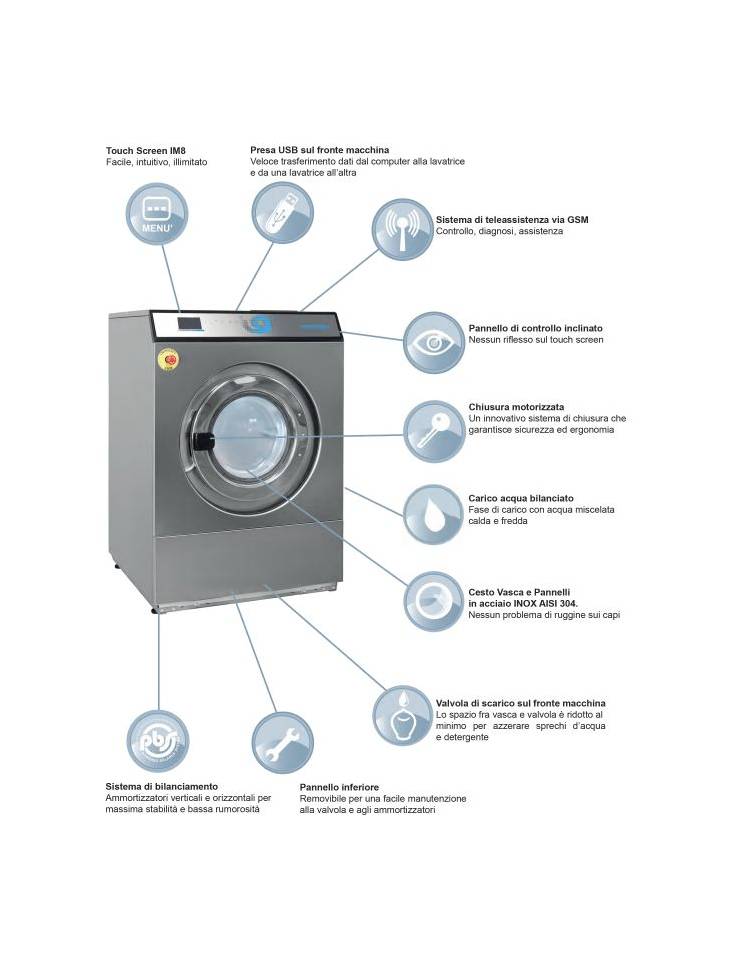 Livello acqua, temperatura, velocità motore e ritmo rotazione/pausa programmabili per una totale personalizzazione dei cicli di lavaggio