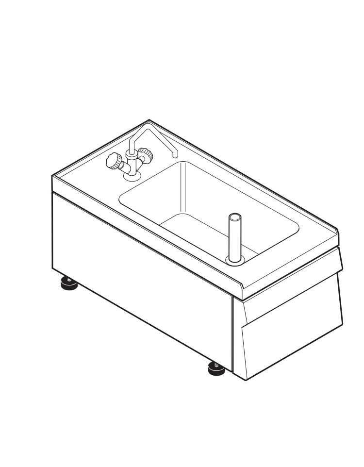Miscelatore e troppopieno in dotazione. Miscelatore a leva opzionale.