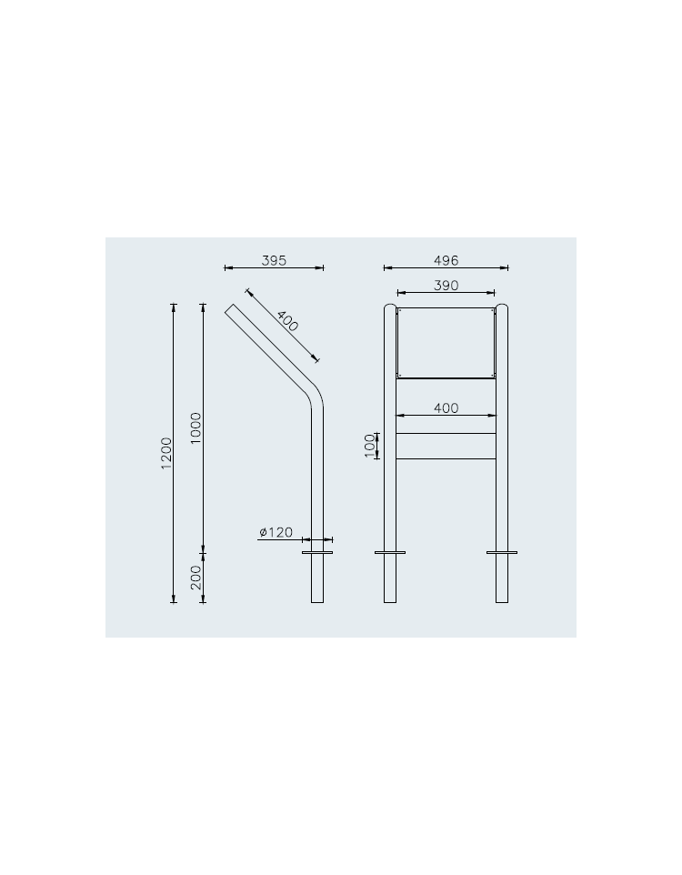 Leggio per esposizione realizzato in acciaio zincato e verniciato, con targa inferiore - Da inghisare - cm 49,6x120h