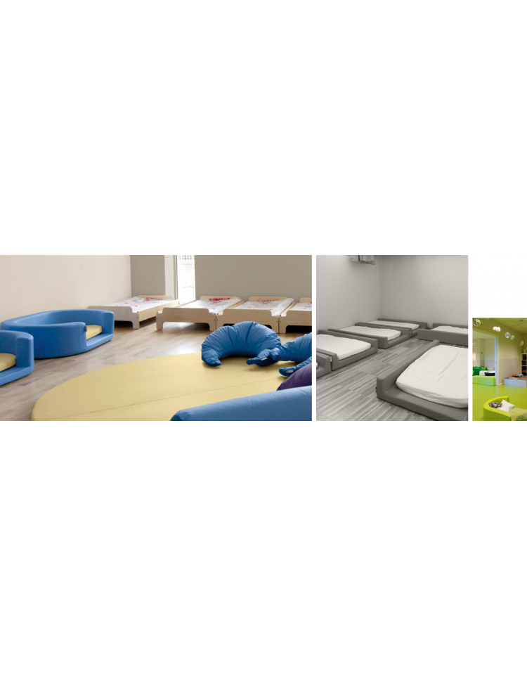 Nella progettazione dei lettini abbiamo tenuto conto di requisiti fondamentali, quali la facile accessibilità, che favorisce l’autonomia dei bambini più grandi, l’impilabilità, che consente di ottimizzare lo spazio e renderlo fruibile per diverse attività e la sicurezza nell’uso.