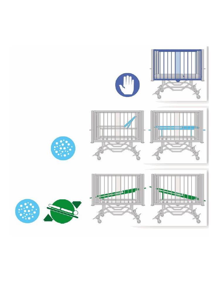I letti pediatrici sono stati studiati e progettati per accogliere in sicurezza bambini di altezza compresa tra 75 cm e 125 cm (circa da 1 a 5 anni). Sono stati impiegati materiali resistenti alla corrosione privi di materiale ligneo di facile pulizia e disinfezione.
