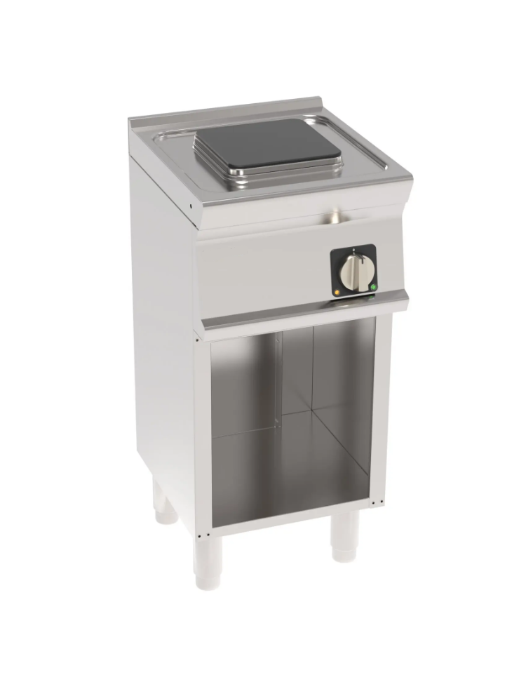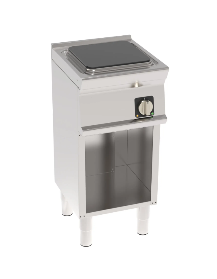 • Cucina elettrica in acciaio Inox su vano aperto, 1 piastra ermetica quadrata cm 22x22 - monofase 2,6 Kw - cm 40x45x90h Cucina elettrica in acciaio Inox su vano aperto, 1 piastra ermetica quadrata cm 22x22 - monofase 2,6 Kw - cm 40x45x90h