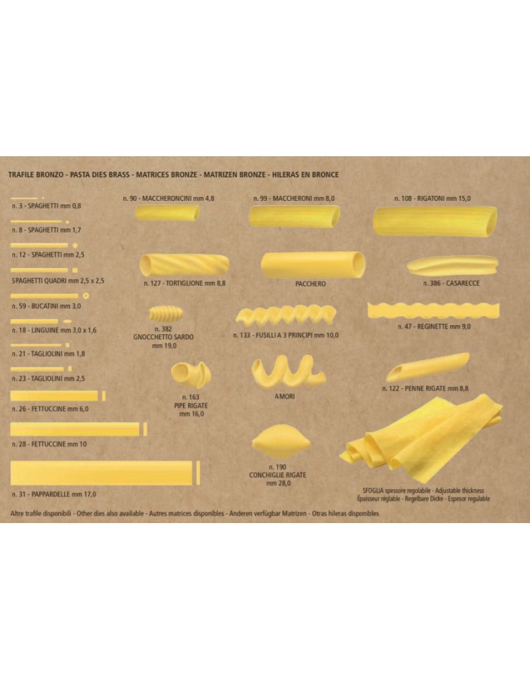 Possibilità di produrre diversi formati di pasta solo cambiando la trafila