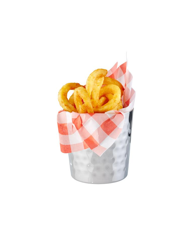Mini cestello porta snack rotondo in acciaio inox con superficie martellata - capacità lt. 0,35 - diametro cm 8,5 - altezza cm 8