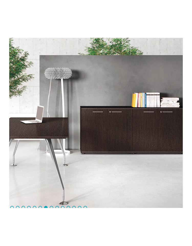 Nasce dall'attuale modello di dirigenza: elegante ma non statica, efficiente e rappresentativa, sempre dinamica. La sua modularità, i materiali, il design fanno di questi prodotti la soluzione più attuale e contemporanea per il mondo del lavoro, impegnato oggi in una ridefinizione dei modelli e delle abitudini consolidate.