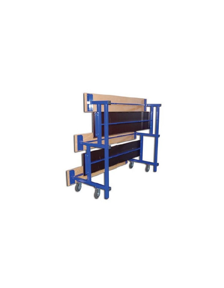 Modulo tribuna da mt 2 a 3 file di seduta a pannelli di legno su struttura in acciaio verniciato (colore a richiesta), ribaltabile e mobile su ruote per stoccaggio