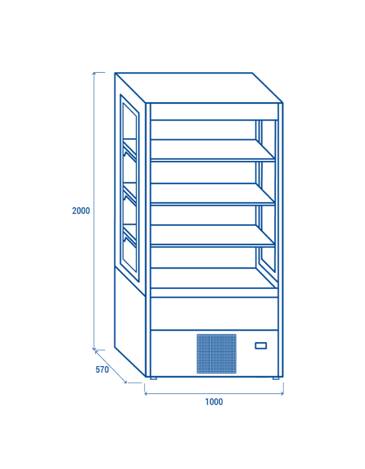 Murale refrigerato, porte scorrevoli, zona esposizione in acciaio inox - Lt 357 - colore nero - +0°/+2°C - cm 100x57x200h