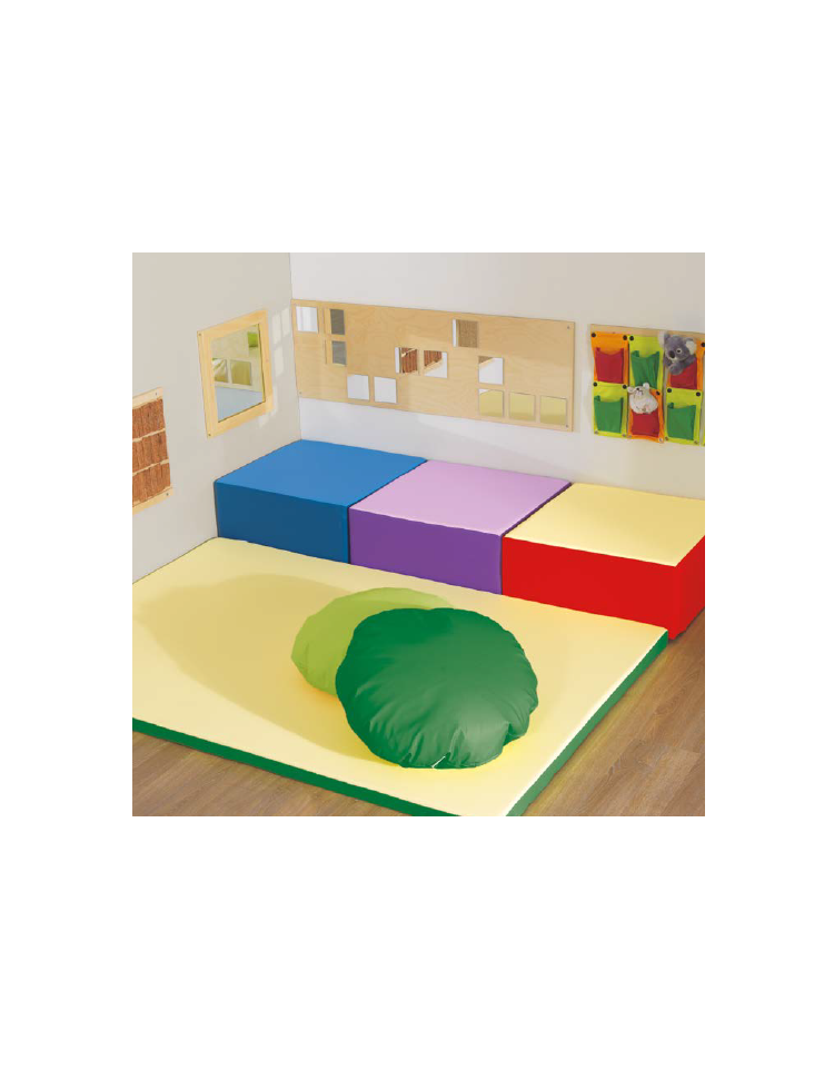 Gli arredi morbidi sostengono e incoraggiano lo sviluppo relazionale e sensomotorio dei bambini da 0 a 6 anni, con un sistema di elementi combinabili con estrema flessibilità, progettati per le esperienze di scoperta del corpo e dello spazio. Sono di facile manutenzione, privi di PVC e ignifughi in Classe 1IM ai sensi del Decreto del Ministero dell’Interno 16.07.2014: ciò significa che non solo il rivestimento esterno, ma l’intero manufatto è ignifugo. I morbidi si caratterizzano per un alto grado di aderenza al pavimento negli accostamenti laterali e verticali.
