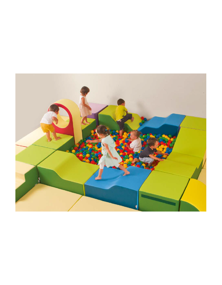 Gli arredi morbidi sostengono e incoraggiano lo sviluppo relazionale e sensomotorio dei bambini da 0 a 6 anni, con un sistema di elementi combinabili con estrema flessibilità, progettati per le esperienze di scoperta del corpo e dello spazio. Sono di facile manutenzione, privi di PVC e ignifughi in Classe 1IM ai sensi del Decreto del Ministero dell’Interno 16.07.2014: ciò significa che non solo il rivestimento esterno, ma l’intero manufatto è ignifugo. I morbidi si caratterizzano per un alto grado di aderenza al pavimento negli accostamenti laterali e verticali.