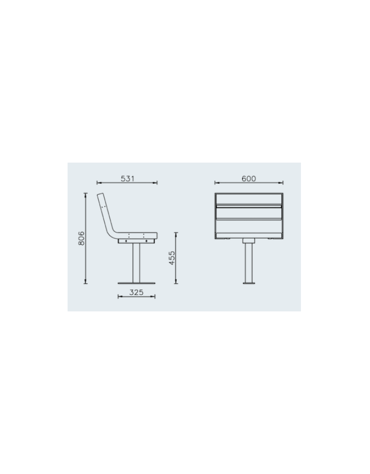 Panchina singola 1 posto senza schienale e coppia di braccioli– legno di pino è composta da seduta e schienale in legno di pino , struttura in acciaio zincato e successivamente verniciato a polveri epossidiche nelle varie colorazioni RAL. La panchina è composta da 2 supporti in tubolare. Alla base sono fissate delle piastre per il fissaggio al suolo tramite tasselli(non forniti). Le doghe di legno sono in legno di pino trattato per l’esterno. La viteria è in acciaio inox.