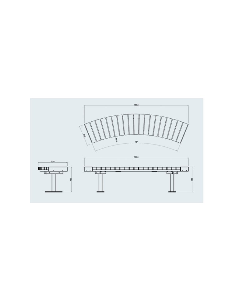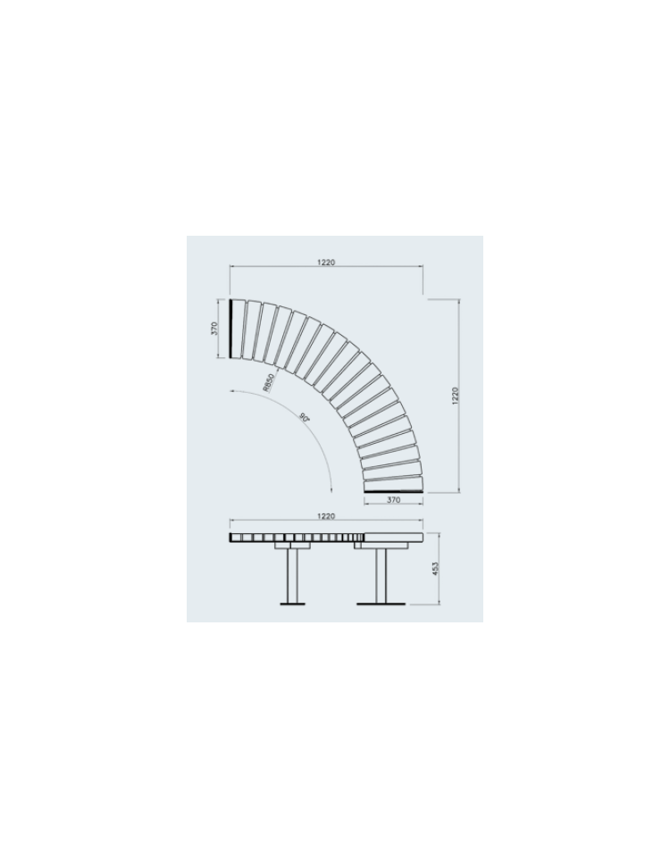 Panchina angolare – legno di pregio è composta da seduta in legno di pregio e struttura in acciaio zincato e successivamente verniciato a polveri epossidiche nelle varie colorazioni RAL. La panchina è composta da 2 supporti in tubolare. Alla base sono fissate delle piastre per il fissaggio al suolo tramite tasselli. Le doghe di legno sono in legno di pregio trattato per l’esterno. La viteria è in acciaio inox.