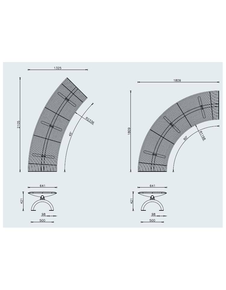 Panchina angolare senza schienale, struttura in acciaio zincato verniciato - Modulo da 45° o 90°
