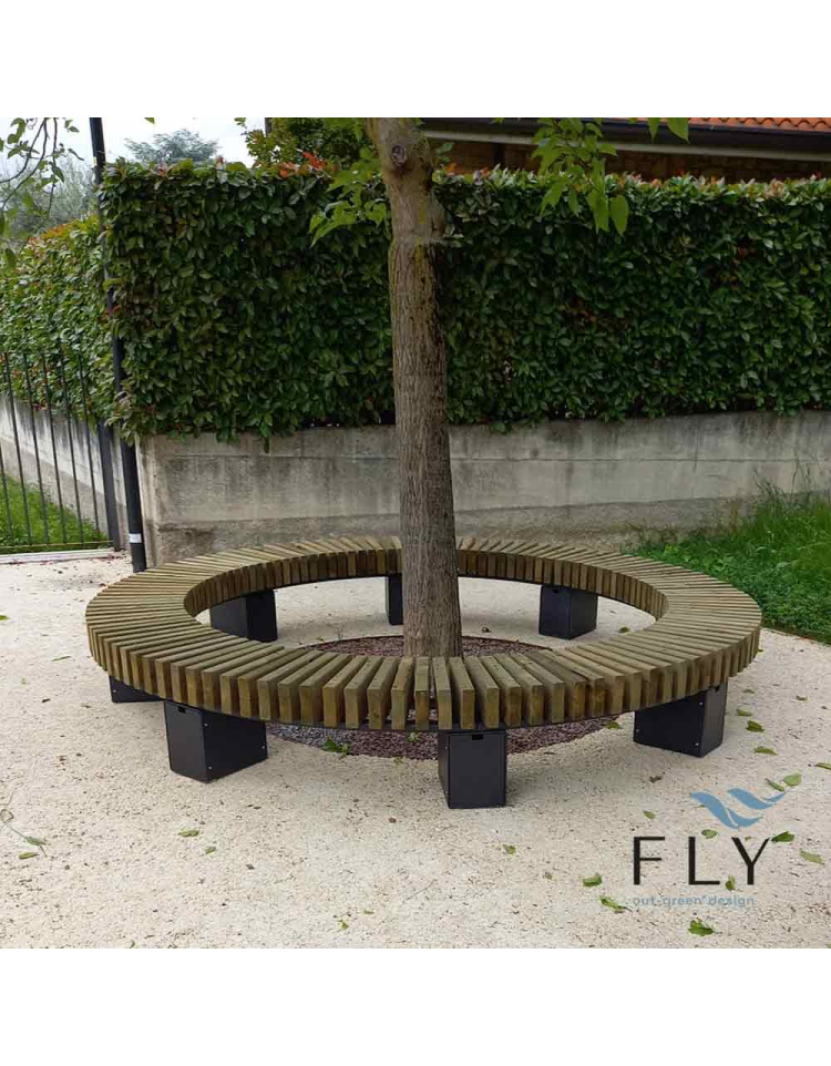 Panchina circolare in legno di pregio e acciaio zincato e verniciato nelle varie colorazioni RAL - Modulo da cm 150x45h