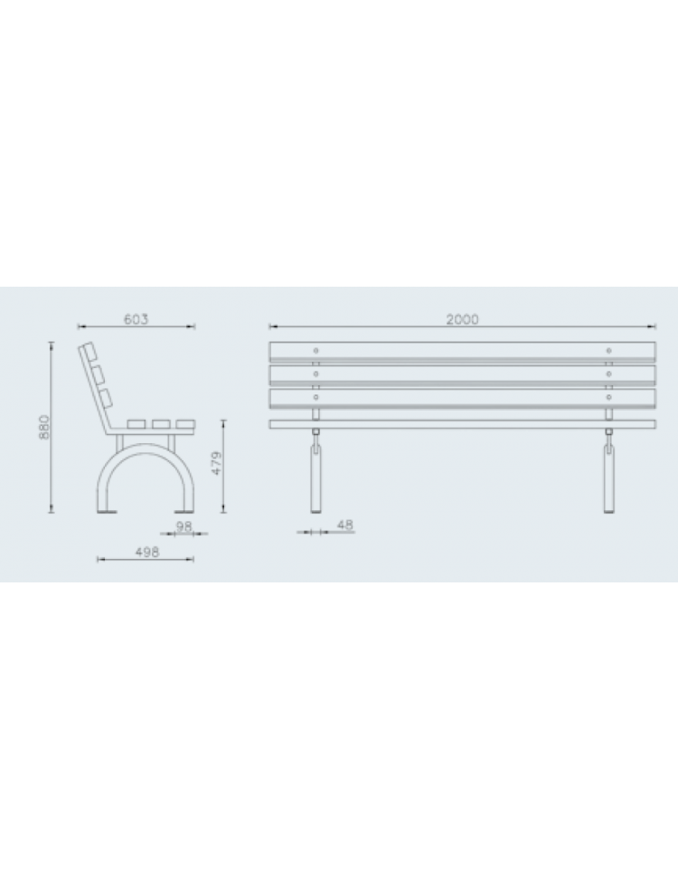 Panchina con braccioli composta da una struttura in acciaio zincato e verniciato e 6 doghe in legno di pino impregnato in autoclave. La struttura portante è costituita da tubolari sagomati ad arco e fissati ai supporti della seduta realizzati in tubolare quadro tramite viti. E’ predisposta con piastre base forate per il fissaggio al suolo tramite tasselli ad espansione. Lo schienale è formato da 3 doghe lunghe 2000 mm e la seduta da 3 doghe della stessa dimensione fissate alla struttura tramite viti.