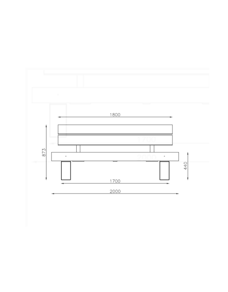 Panchina con schienale con legno di pregio, in acciaio zincato e verniciato - cm 200x43,3x87,3h