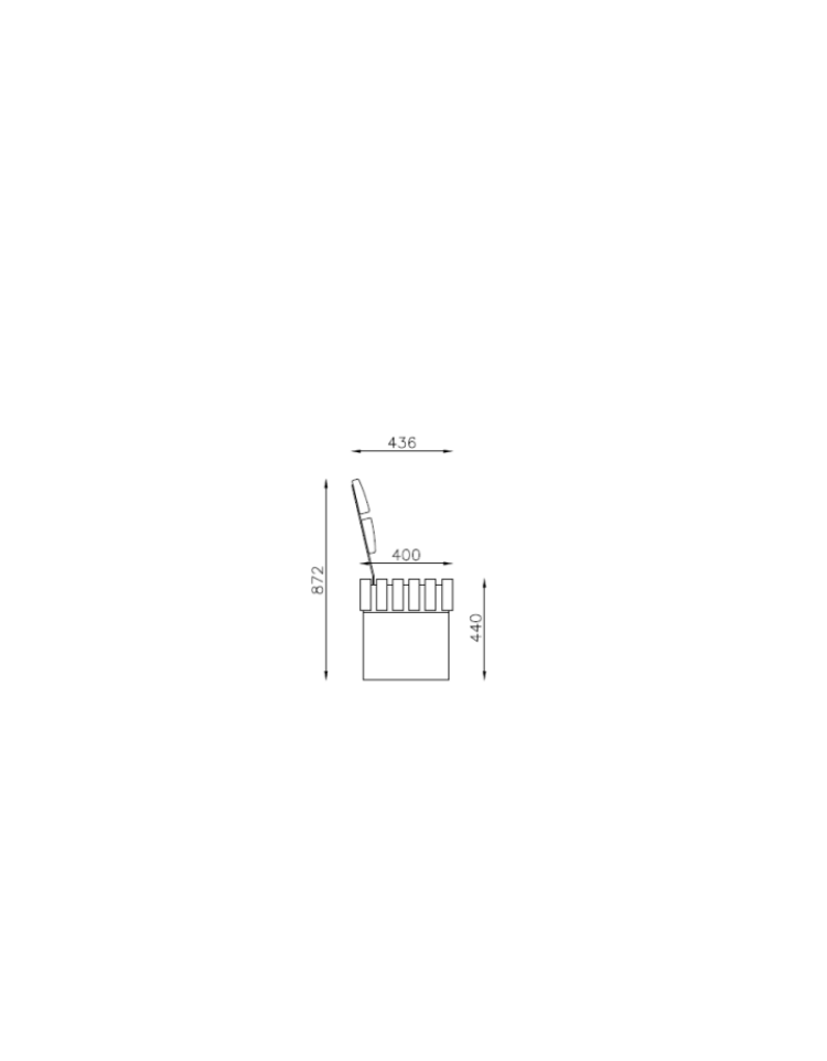 Panchina realizzata con struttura in acciaio zincato e verniciato. I supporti sono realizzati in lamiera, sopra i quali viene fissata una piastra sagomata e forata per il distanziamento e fissaggio delle doghe in legno. La seduta è formata da 6 doghe in legno di pregio. E’ fornita di schienale con doghe sagomate appositamente per un buon appoggio della schiena, fissate direttamente alla seduta tramite due supporti in acciaio tagliati con tecnologia laser. La viteria è tutta in acciaio inox. Panchina dal design lineare e molto robusta.