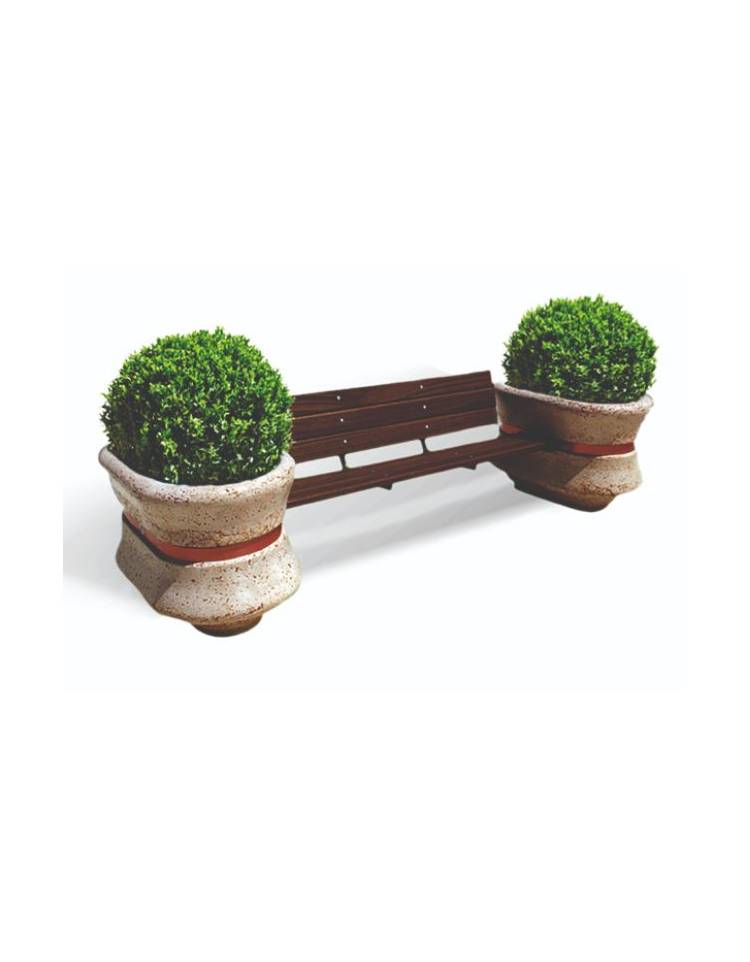 Panchina con schienale e seduta in legno fra 2 fioriere ovali in cemento colore Bianco pietra - cm 280x100x85h - CAM