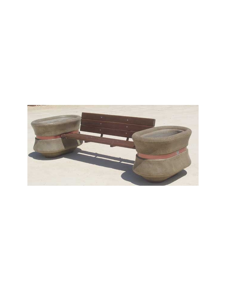 Panchina con schienale e seduta in legno fra 2 fioriere ovali in cemento colore Grigio travertino - cm 280x100x85h - CAM