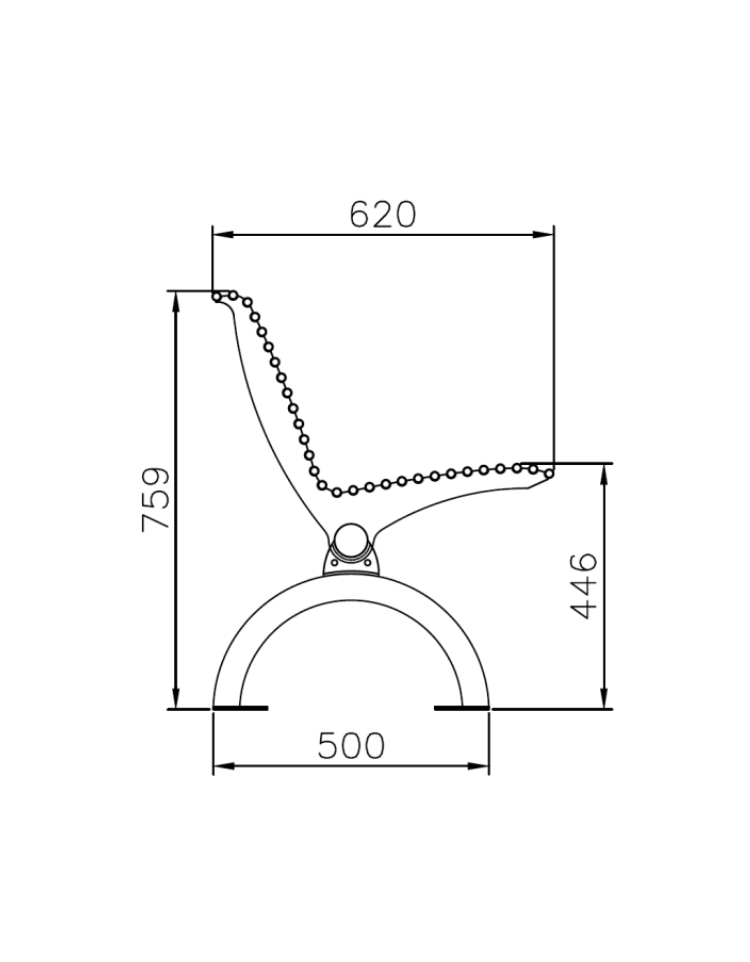 Panchina realizzata interamente in acciaio inox con seduta ergonomica, che si adatta a contesti dove è molto presente il sale. La seduta e lo schienale sono composte da 29 trafilati in tubolare chiusi alle estremità da tappi in PVC cromati, saldati a tre sostegni in lamiera sagomati con tecnologia laser e a loro volta saldati a un traverso orizzontale centrale in tubolare chiuso alle estremità da tappi in acciaio inox. I due supporti in tubolare sagomati ad arco e fissati al traverso centrale tramite viti,hanno piastre base per il fissaggio al suolo con tasselli. La viteria fornita è in acciaio inox.