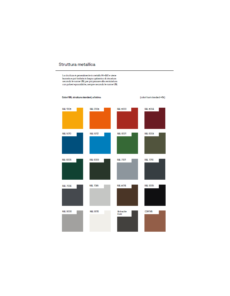 Colore ANTRACITE, GRIGIO RAL 7016, GRIGIO RAL 9006, ROSSO RAL 3000, VERDE RAL 6005