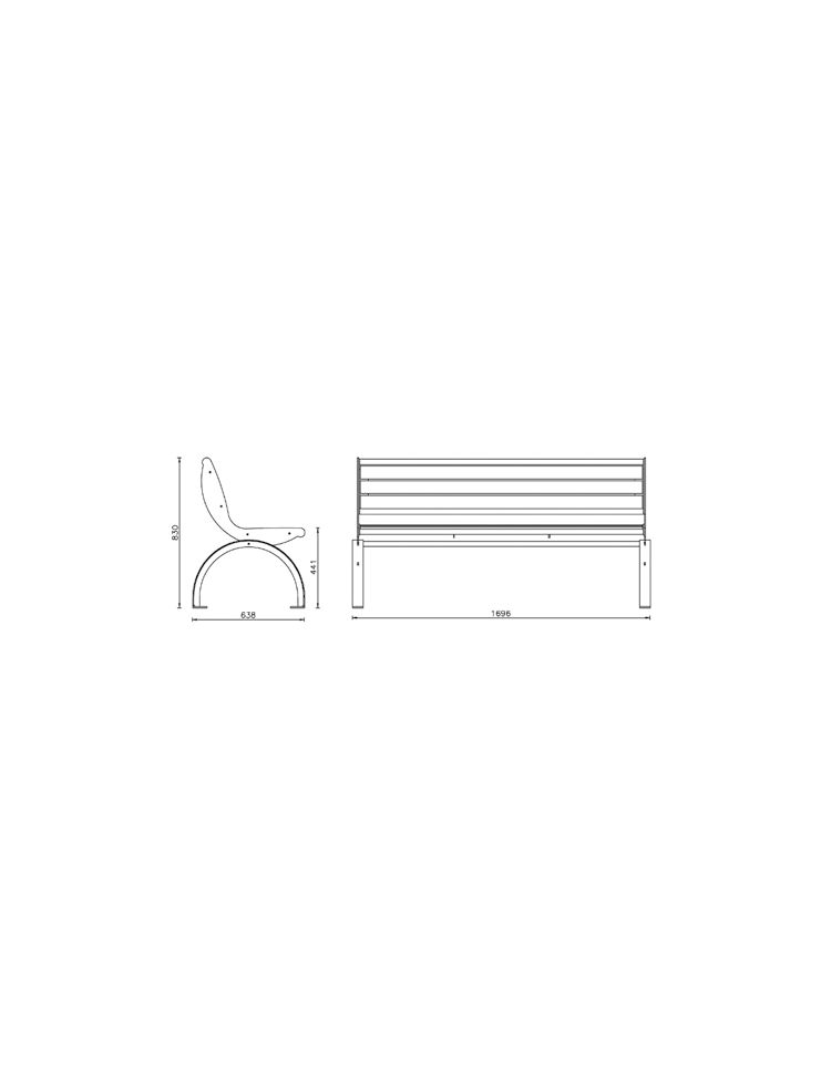 Panchina metallica con braccioli costituita da due spalle laterali formate da una flangia sagomata con tecnologia laser, saldata su un arco in profilo a “T” con piastrine saldate alle base per poter fissare la panchina al suolo con tasselli ad espansione. Seduta formata da due tubolari in acciaio e 4 doghe di legno di pregio trattate per l'esterno e fissate su tre supporti in piatto, uno centrale e due laterali saldati ai supporti laterali sagomati. Lo schienale ha le stesse caratteristiche della seduta con 3 doghe di legno. La seduta e lo schienale sono fissati alle spalle tramite viti. Le parti etalliche sono zincate e verniciate a polveri poliestere termoindurenti nelle diverse colorazioni RAL. La viteria in acciaio inox. Molto robusta, particolarmente adatta a luoghi di grande affluenza, vie pedonali, grandi parchi, fermate metropolitane, stazioni treno, centri commerciali.