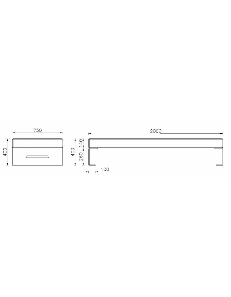 Dimensioni: 2000x745x400h mm