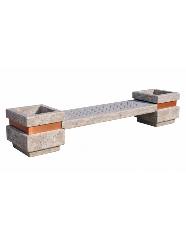 Panchina in cemento calcestruzzo seduta con fori e 2 fioriere laterali - colore Grigio sabbiato - cm 310x60x65h