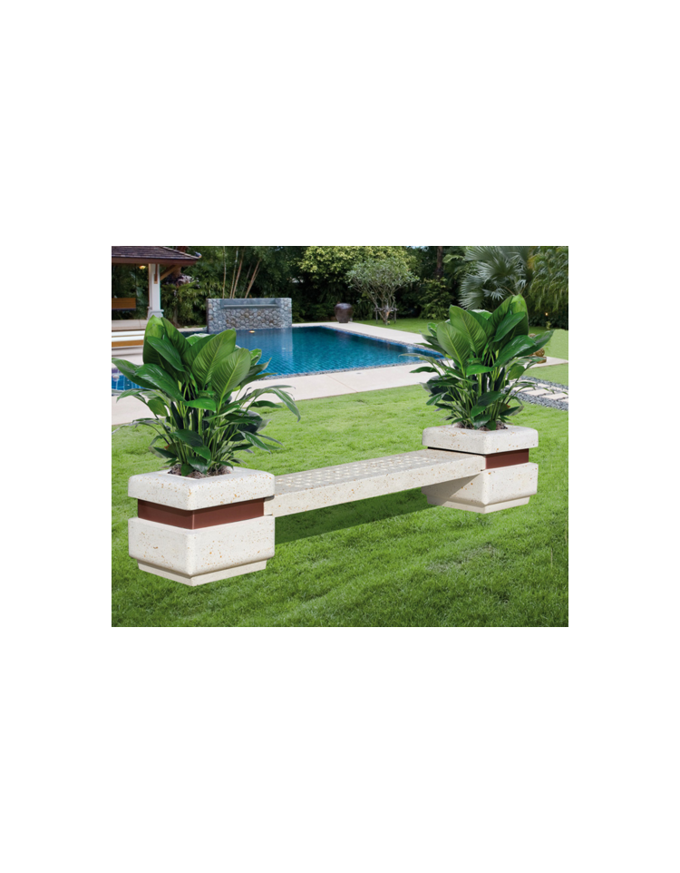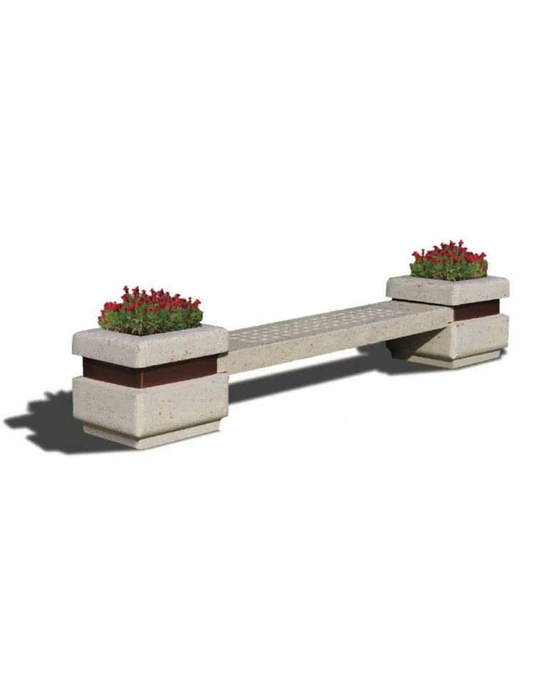 Panchina in cemento calcestruzzo seduta con fori e 2 fioriere laterali - colore Grigio travertino - cm 310x60x65h - CAM