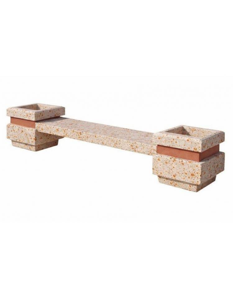Panchina in cemento calcestruzzo seduta liscia con 2 fioriere laterali - colore Bianco travertino - cm 310x60x65h - CAM