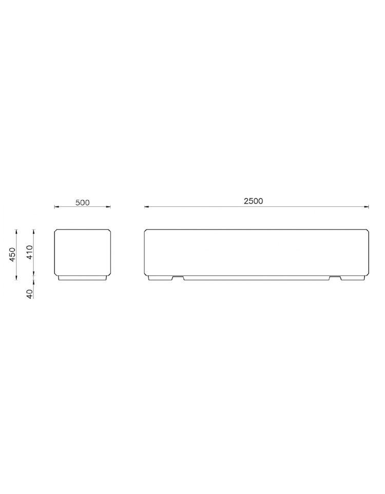 Dimensioni: 2500x500x450h mm