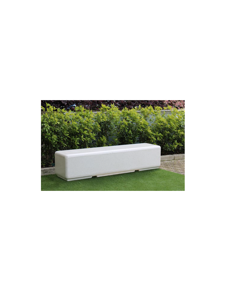 Panchina realizzata in graniglia di marmo, dalla lunghezza di 2500 mm. Panchina monoblocco realizzata in graniglia di marmo con acciaio zigrinato, composto da cemento bianco 525, graniglia di marmo bianco a granulometria studiata, polvere di marmo bianco, additivi compattante e fluidificante per ridurre la percentuale d’acqua, gettato in casseforme per poi essere sabbiati ad alta pressione mediante l’utilizzo di sabbia di quarzo. Il prodotto è fornito con trattamento antigraffiti. *Disponibile nella versione con angoli arrotondati. PANCHINA PIANA LEVIGATA CON TRATTAMENTO ANTIGRAFFITI
