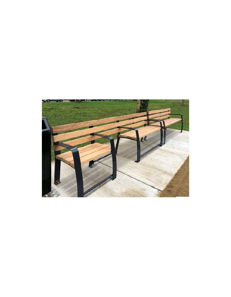 Panchina inclusiva con schienale con legno di pino è composta da schienale e seduta in legno di pregio, struttura in acciaio zincato e successivamente verniciato a polveri epossidiche nelle varie colorazioni RAL. La panchina è composta da 2 supporti in piatto rinforzati da un profilo tagliato a laser. Alla base sono fissate delle piastrine per il fissaggio al suolo tramite tasselli. Le doghe di legno sono in legno di pino trattato per l’esterno. La viteria è in acciaio inox.