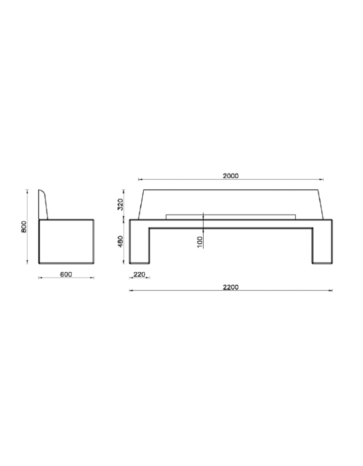 Dimensioni: 2200x600x800h mm