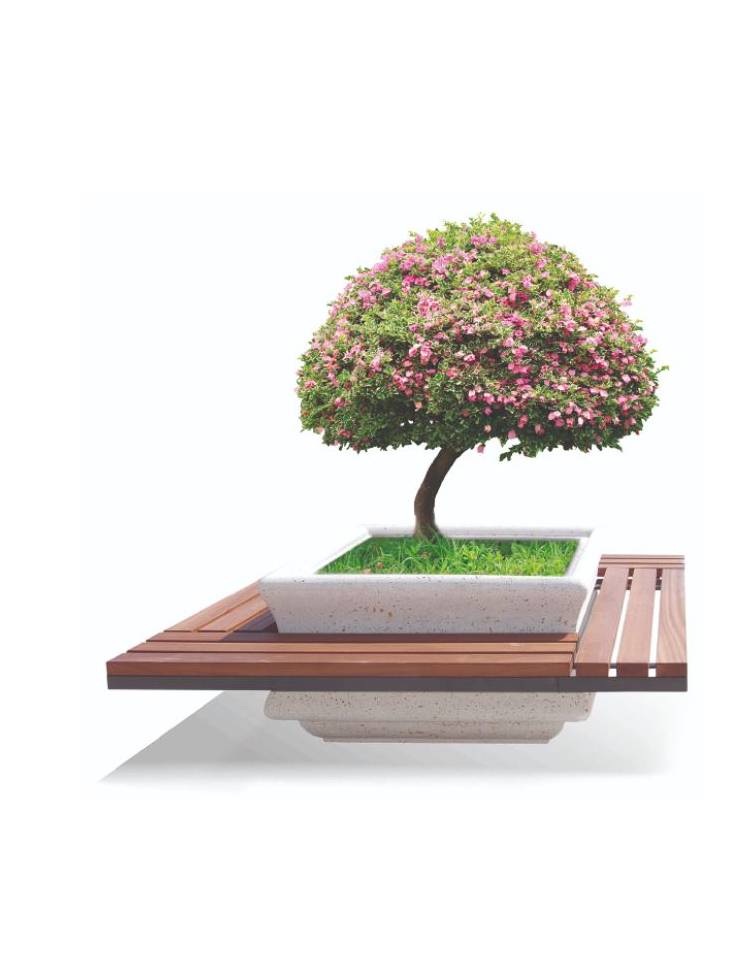 Panchina quadrata seduta in legno e fioriera centrale in cemento colore Grigio sabbiato - cm 160x160x65h - Conforme ai CAM