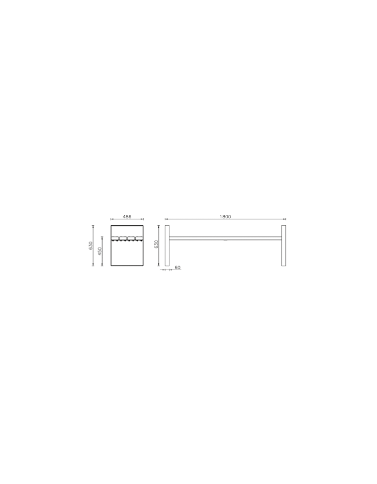 Panchina costituita da supporti in piatto opportunamente piegati e contornati a formare un rettangolo. Sulla base dei supporti ci sono dei fori per il tassellamento al suolo (o per inserire un piedino di appoggio al suolo) mentre dalla base è saldato un piatto opportunamente forato per il fissaggio delle doghe in legno. Seduta formata da doghe in legno di pino trattate per esterno. La struttura è in acciaio zincato e verniciato. La viteria è in acciaio inox.