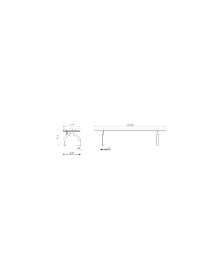 Panchina composta da una struttura in acciaio zincato e verniciato e 3 doghe in legno di pregio di grosso spessore. La struttura portante è costituita da tubolari sagomati ad arco e fissati ai supporti della seduta realizzati in tubolare quadro tramite viti. E’ predisposta con piastre base forate per il fissaggio al suolo tramite tasselli ad espansione. La seduta è composta da 3 doghe di 2000 mm fissate alla struttura tramite viti.